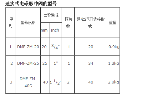 速接式電磁脈沖閥詳細介紹