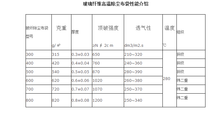 玻纖高溫除塵布袋/玻璃纖維濾袋是使用玻璃纖維機(jī)織物經(jīng)特殊表面處理制成的過(guò)濾材料,具有耐高溫、耐腐蝕、抗結(jié)露、熱穩(wěn)定性好、粉塵剝離性好、清灰能耗低等特點(diǎn),玻璃纖維除塵布袋伸長(zhǎng)不變形,尺寸穩(wěn)定好,是一種較為理想的除塵布袋,可在280℃的溫度下長(zhǎng)期使用。玻纖除塵布袋廣泛應(yīng)用于:鋼鐵、治煉、鐵合金、化工、水泥、電石、垃圾焚燒、電力、瀝青攪抖等。